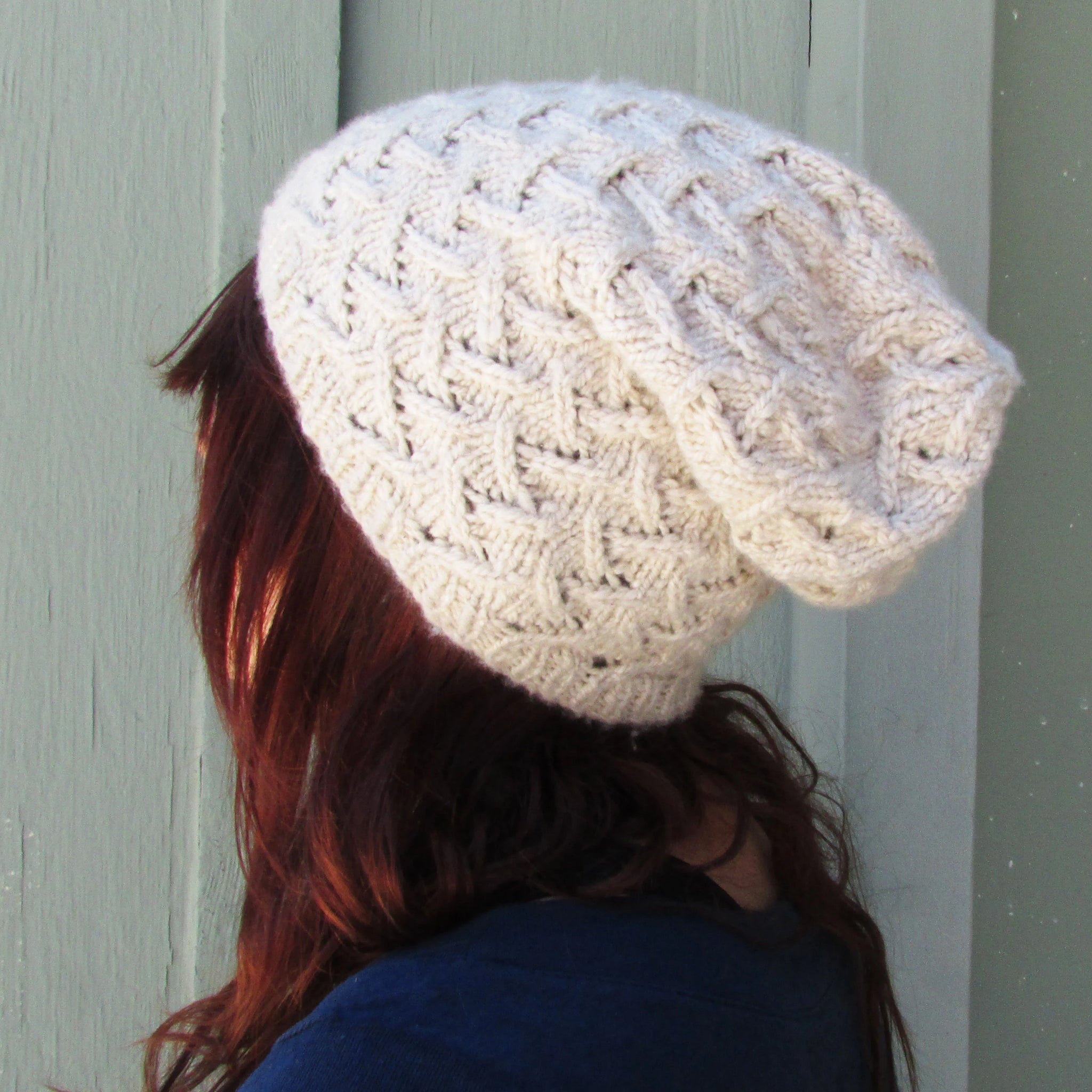 Slouchy Beanie Knitting Pattern Lattice Slouch Hat